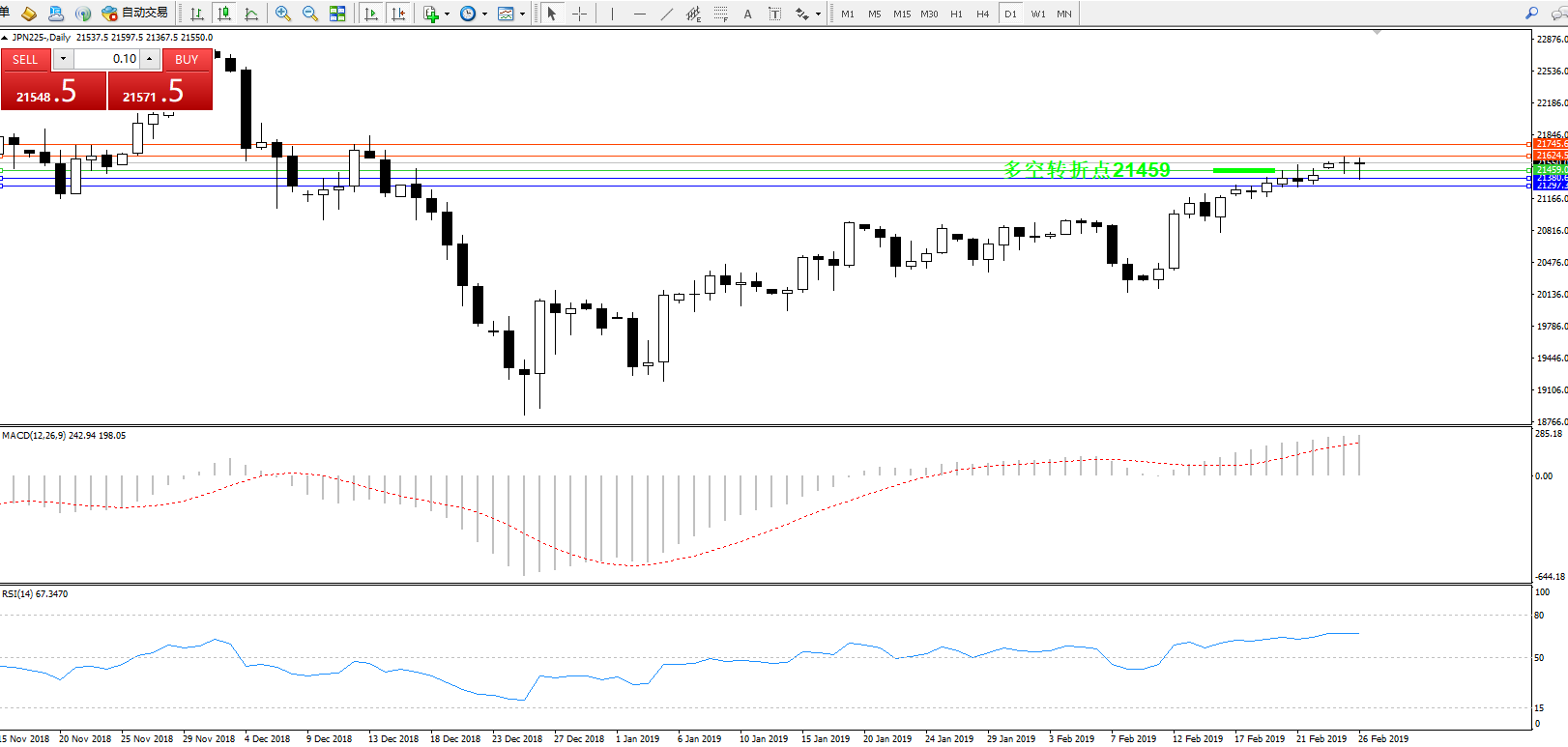 日本股市走低,其中矿业、化工、石油和塑料和运输设备等下跌的板块带领股指走低。日经指数 .N225 收跌0.37%,报21,449.39点,盘中一度触及21,610.88点,为去年12月中以来最高水平。之后亚洲股市下跌以及财年结束前的卖压导致大盘回落。“日本股市受惠於贸易紧张情势趋於缓和,以及寄望美联储鸽派政策,但这些主要是外部因素,而非本土因素。财年底为粉饰账面进行的卖盘遏制了市场走势,”Monex Securities首席策略师Takashi Hiroki说。“不过,如果日经指数达到21,700点水平,卖压可能放缓。该处水平代表近期跌势的50%回档位,如果能突破该水准,空方或将不得不转变头寸。”