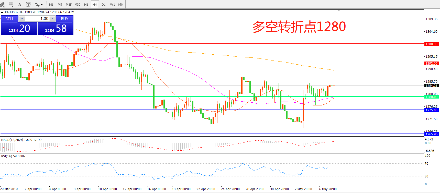 交易策略:在1280.00之上看涨,目标1292.00   1300.00