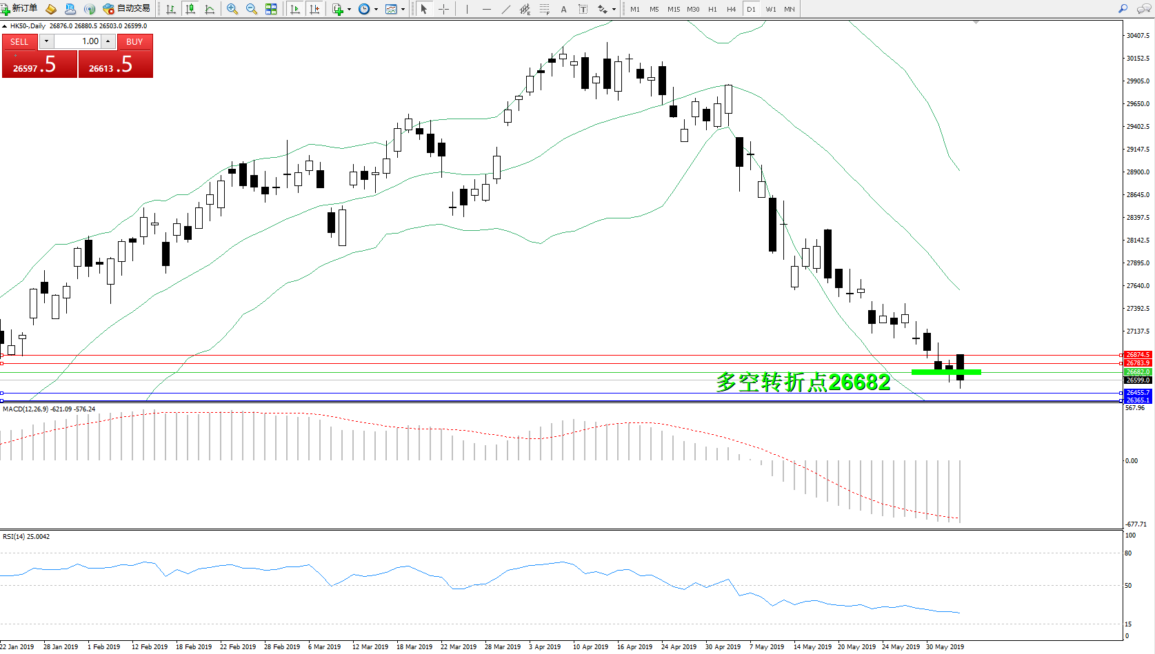 香港恒生指数小幅高开后快速走低,随后在平盘线下方窄幅震荡,截至收盘跌0.49%,报26761.52点。多家投行下调美国经济预期。投资者正在权衡美联储降息的可能性,圣路易斯联储行长称美联储可能很快就要被迫降息。隔夜美股道指标指近乎收涨。全球经贸局势短期难言乐观,全球市场风险偏好继续受压。上周美国10年期国债收益率持续下滑,对3个月期美债收益率的倒挂幅度再次加深,创下12年来最大。