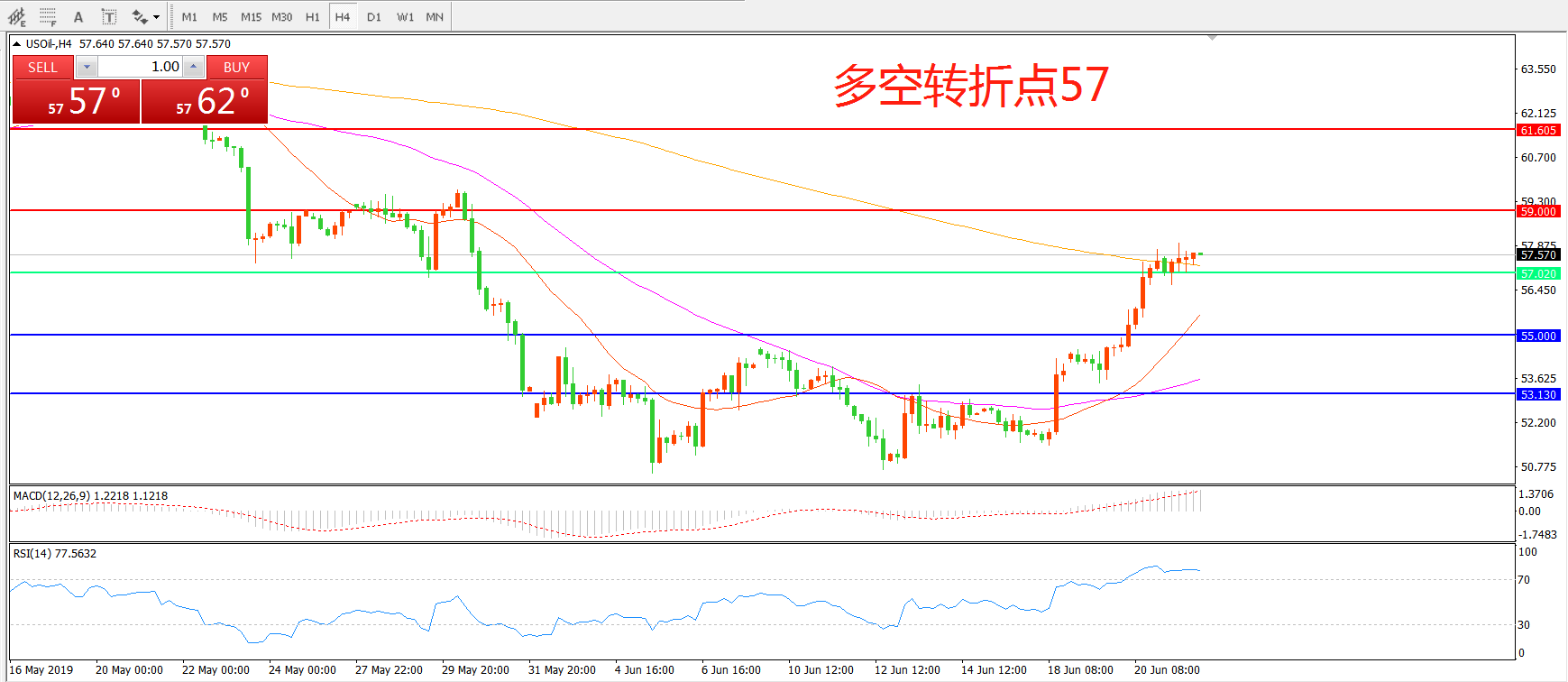 交易策略:在57.00之上看涨,目标59.00 61.50