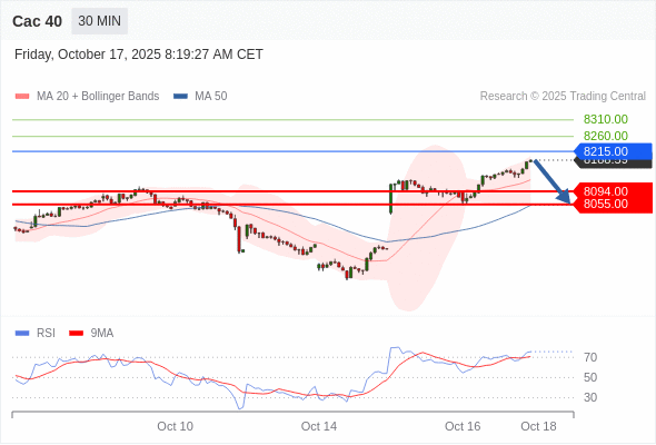 在 8215.00 之下,看跌,目标价位为 8094.00 ,然后为 8055.00 。