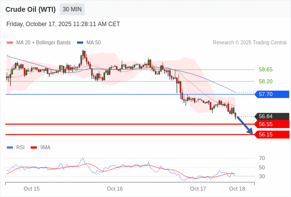 在 57.70 之下,看跌,目标价位为 56.55 ,然后为 56.15 。