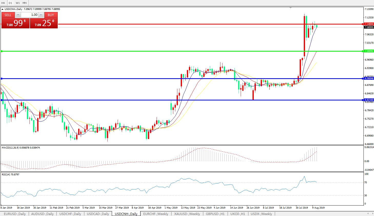 美元兑人民币USDCNH 日线图: