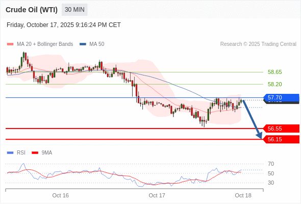在 57.70 之下,看跌,目标价位为 56.55 ,然后为 56.15 。