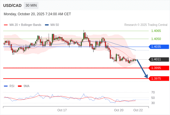 在 1.4035 之下,看跌,目标价位为 1.3995 ,然后为 1.3975 。