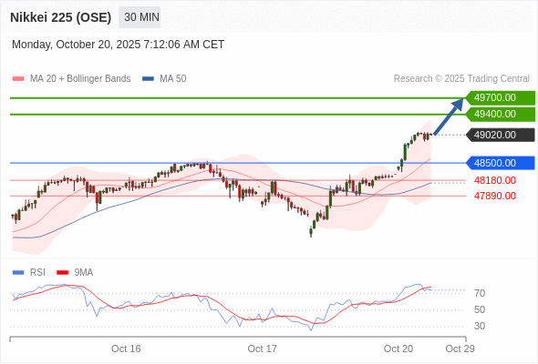 在 48500.00 之上,看涨,目标价位为 49400.00 ,然后为 49700.00 。