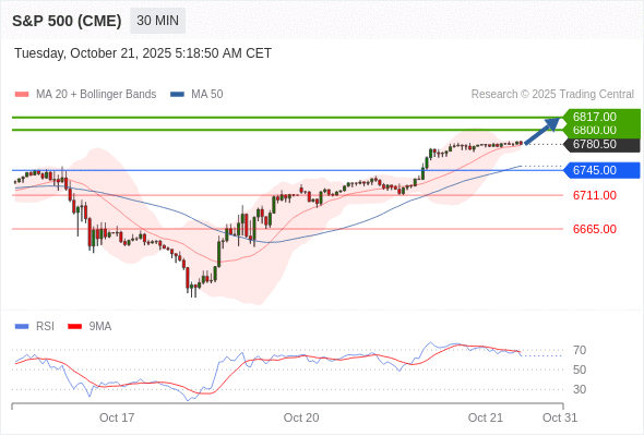 在 6745.00 之上,看涨,目标价位为 6800.00 ,然后为 6817.00 。