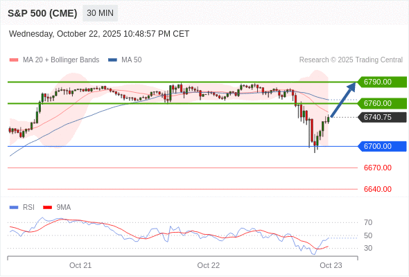 在 6700.00 之上,看涨,目标价位为 6760.00 ,然后为 6790.00 。