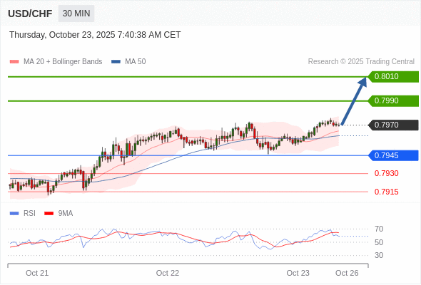 在 0.7945 之上,看涨,目标价位为 0.7990 ,然后为 0.8010 。