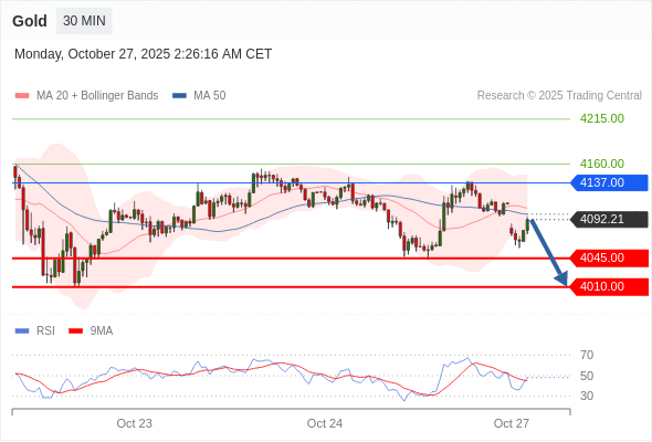 在 4137.00 之下,看跌,目标价位为 4045.00 ,然后为 4010.00 。