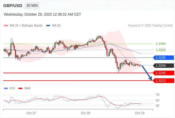 在 1.3295 之下,看跌,目标价位为 1.3245 ,然后为 1.3220 。