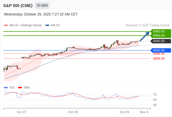在 6902.00 之上,看涨,目标价位为 6963.00 ,然后为 6980.00 。