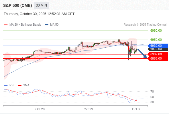 在 6930.00 之下,看跌,目标价位为 6902.00 ,然后为 6888.00 。