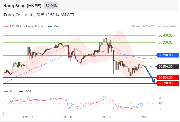 交易策略: 在 26420.00 之下,看跌,目标价位为 26100.00 ,然后为 26020.00 。