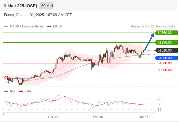 日经225股指期货 (OSE) 当日内: 目标位为52350.00。