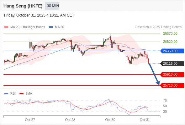 香港恒生指数期货 当日内: 目标位为25910.00。