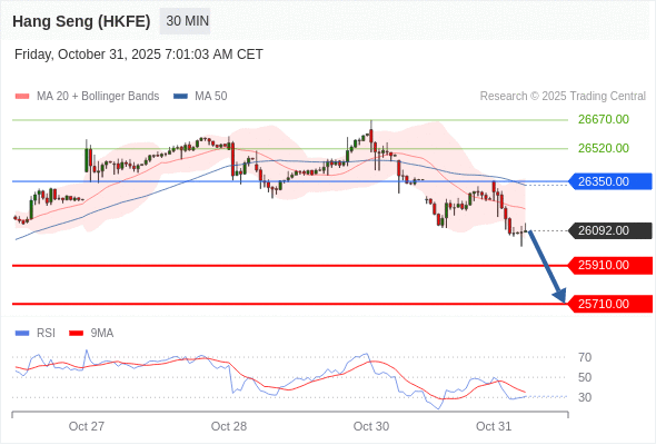 交易策略: 在 26350.00 之下,看跌,目标价位为 25910.00 ,然后为 25710.00 。