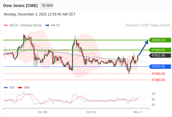 在 47620.00 之上,看涨,目标价位为 47920.00 ,然后为 48100.00 。