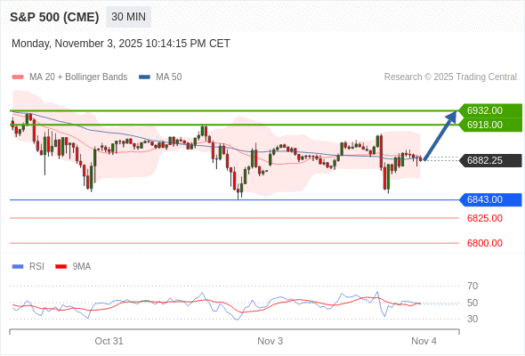 在 6843.00 之上,看涨,目标价位为 6918.00 ,然后为 6932.00 。