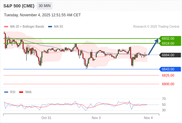 在 6843.00 之上,看涨,目标价位为 6918.00 ,然后为 6932.00 。