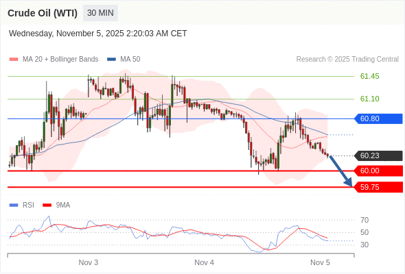 在 60.80 之下,看跌,目标价位为 60.00 ,然后为 59.75 。