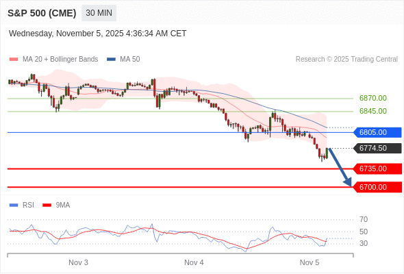 交易策略: 在 6805.00 之下,看跌,目标价位为 6735.00 ,然后为 6700.00 。