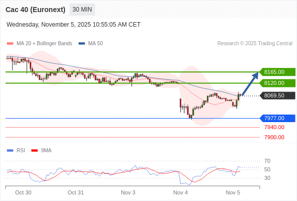 在 7977.00 之上,看涨,目标价位为 8120.00 ,然后为 8165.00 。