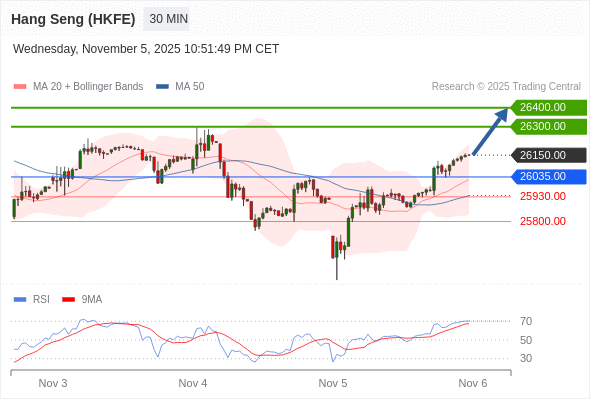 交易策略: 在 26035.00 之上,看涨,目标价位为 26300.00 ,然后为 26400.00 。