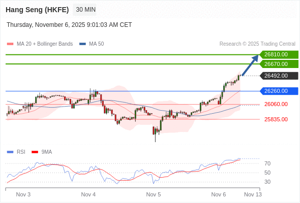 在 26260.00 之上,看涨,目标价位为 26670.00 ,然后为 26810.00 。