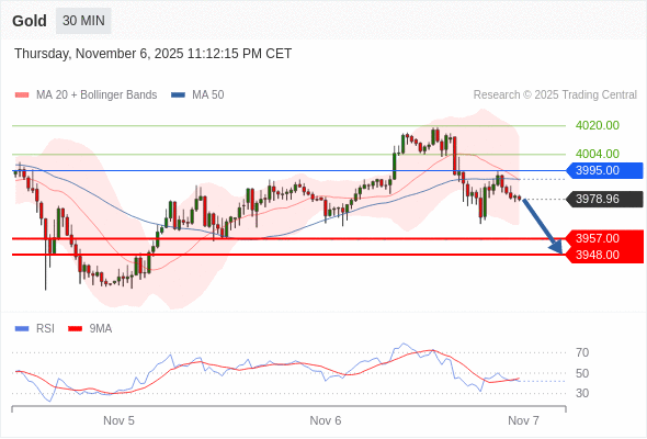 在 3995.00 之下,看跌,目标价位为 3957.00 ,然后为 3948.00 。