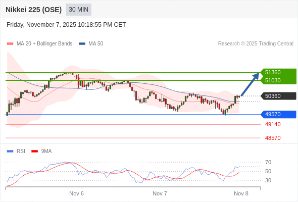 在 49570 之上,看涨,目标价位为 51030 ,然后为 51360 。