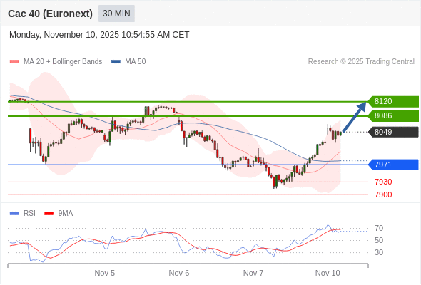 在 7971 之上,看涨,目标价位为 8086 ,然后为 8120 。