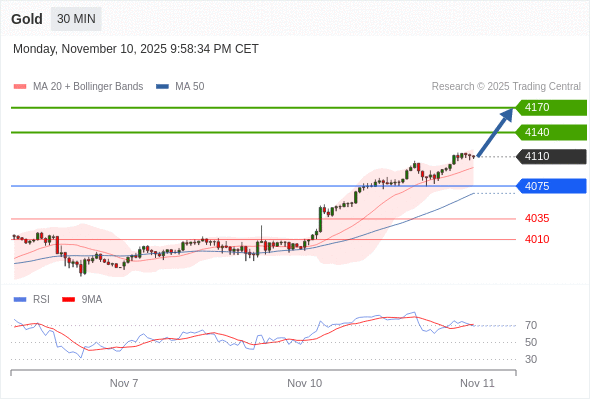 在 4075 之上,看涨,目标价位为 4140 ,然后为 4170 。