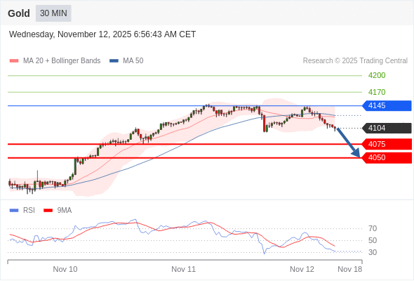 在 4145 之下,看跌,目标价位为 4075 ,然后为 4050 。