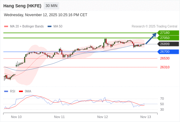 在 26700 之上,看涨,目标价位为 27050 ,然后为 27180 。