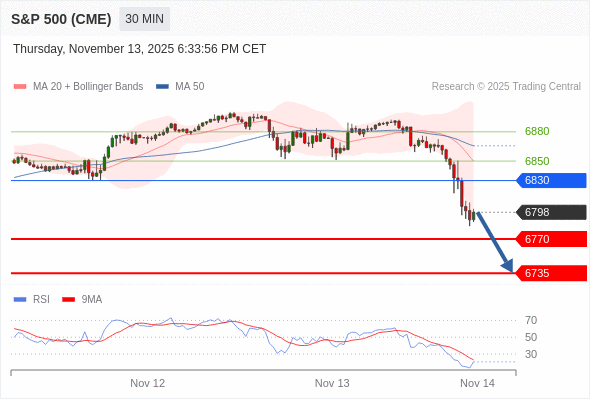 在 6830 之下,看跌,目标价位为 6770 ,然后为 6735 。