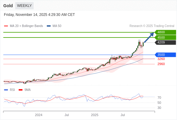 在 3500 之上,看涨,目标价位为 4500 ,然后为 4800 。