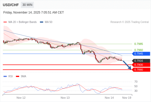 在 0.7945 之下,看跌,目标价位为 0.7900 ,然后为 0.7880 。