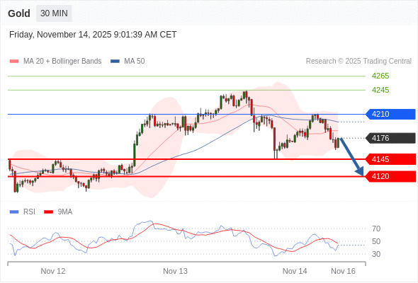 在 4210 之下,看跌,目标价位为 4145 ,然后为 4120 。