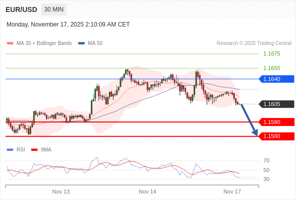 交易策略: 在 1.1640 之下,看跌,目标价位为 1.1580 ,然后为 1.1560 。