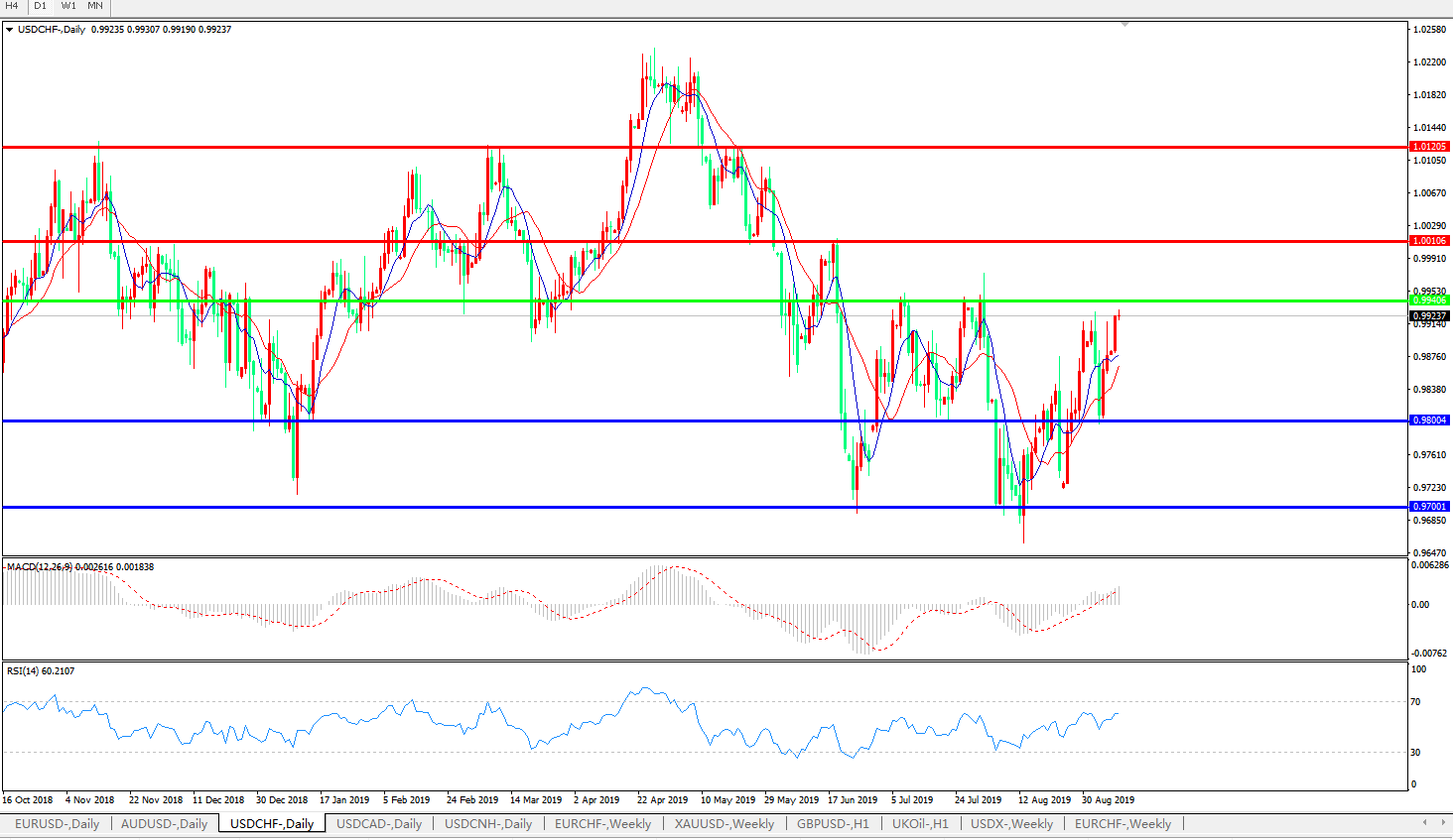 美元瑞郎USDCHF   日线图:
