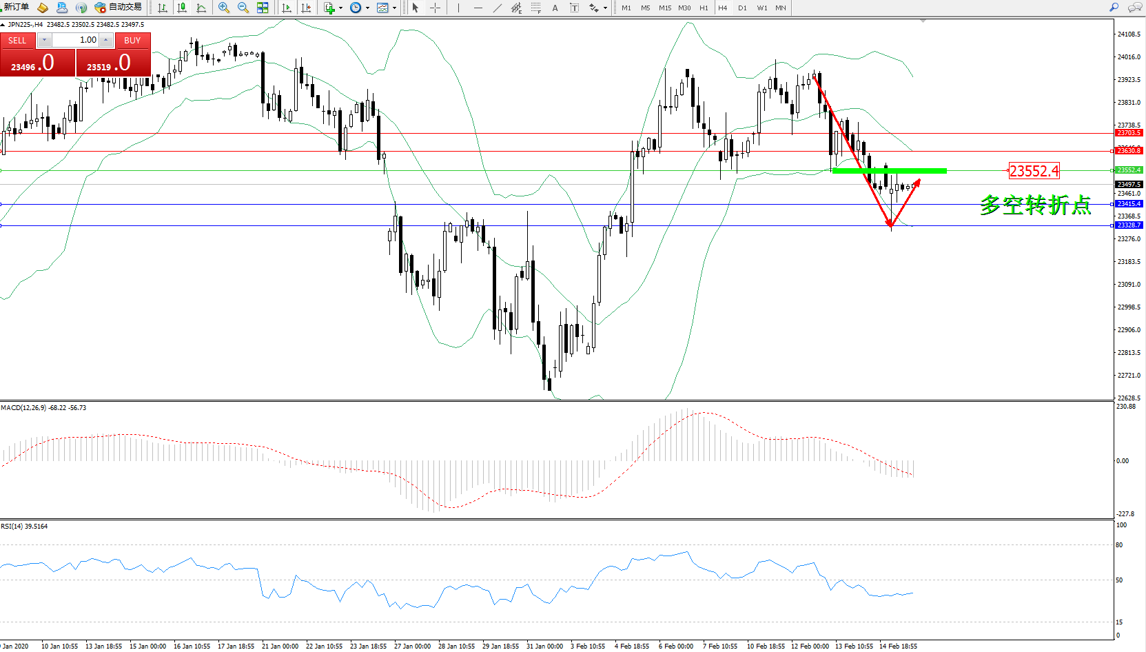 日经225指数2月17日(周一)收盘下跌169.59点,跌幅0.72%,报23518.00点。日本第四季度经济创下逾五年来最大萎缩,加剧了卫生风险打击经济活动之际的衰退担忧。根据内阁府周一公布的初步数据,日本第四季度GDP环比折合年率下降6.3%。受访经济学家的预测为下降3.8%,显示消费税上调、全球需求疲软和超级台风对经济的负面冲击;会很快促使日本央行采取进一步的行动。日本央行官员上周警告了四季度GDP显著萎缩的风险。央行可能强调需要更多数据来评估经济趋势。