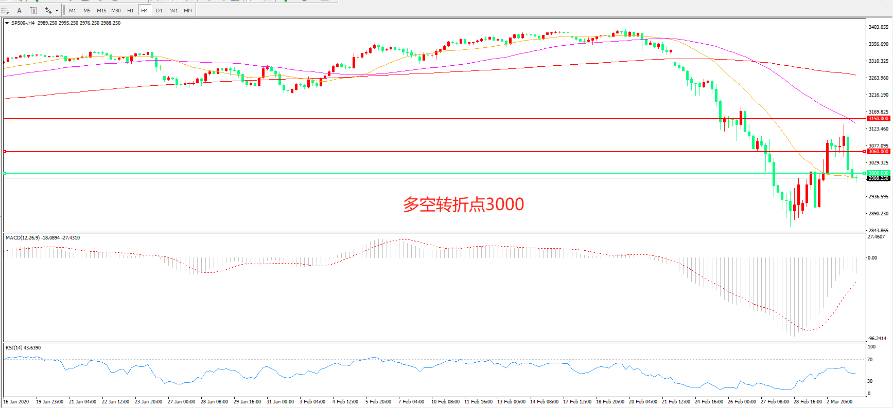 多空转折点:3000.00