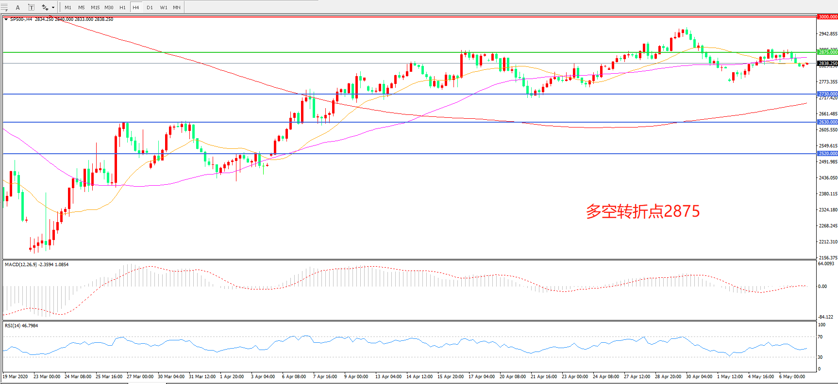 标普500 SP500   4小时图