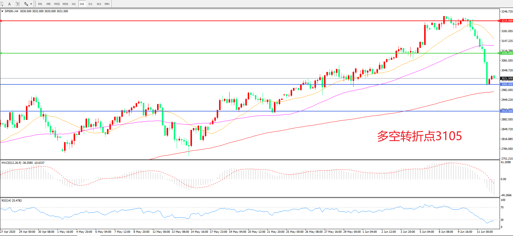 多空转折点:3105.00