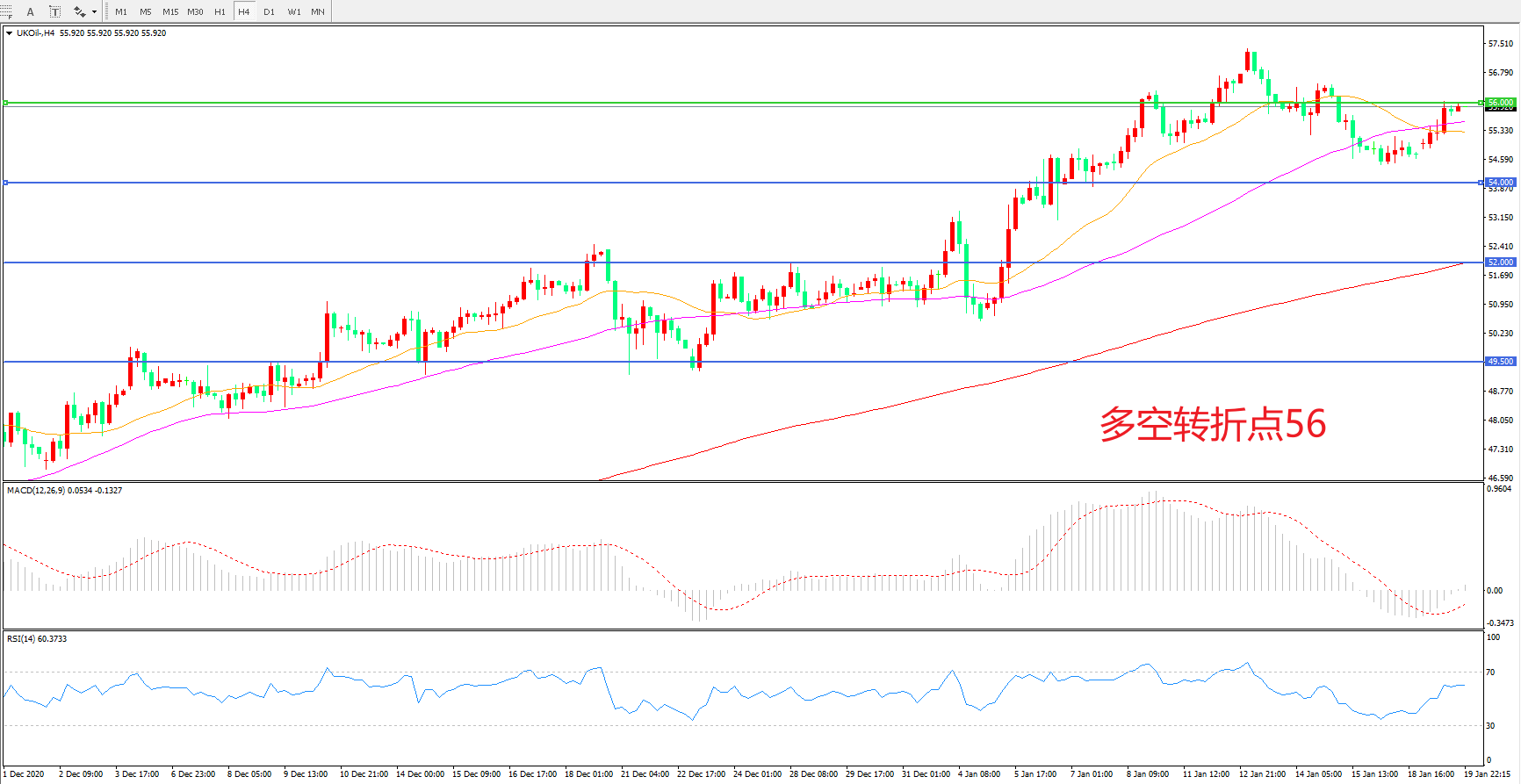交易策略: 在56.00之上看涨,目标60.00 63.00