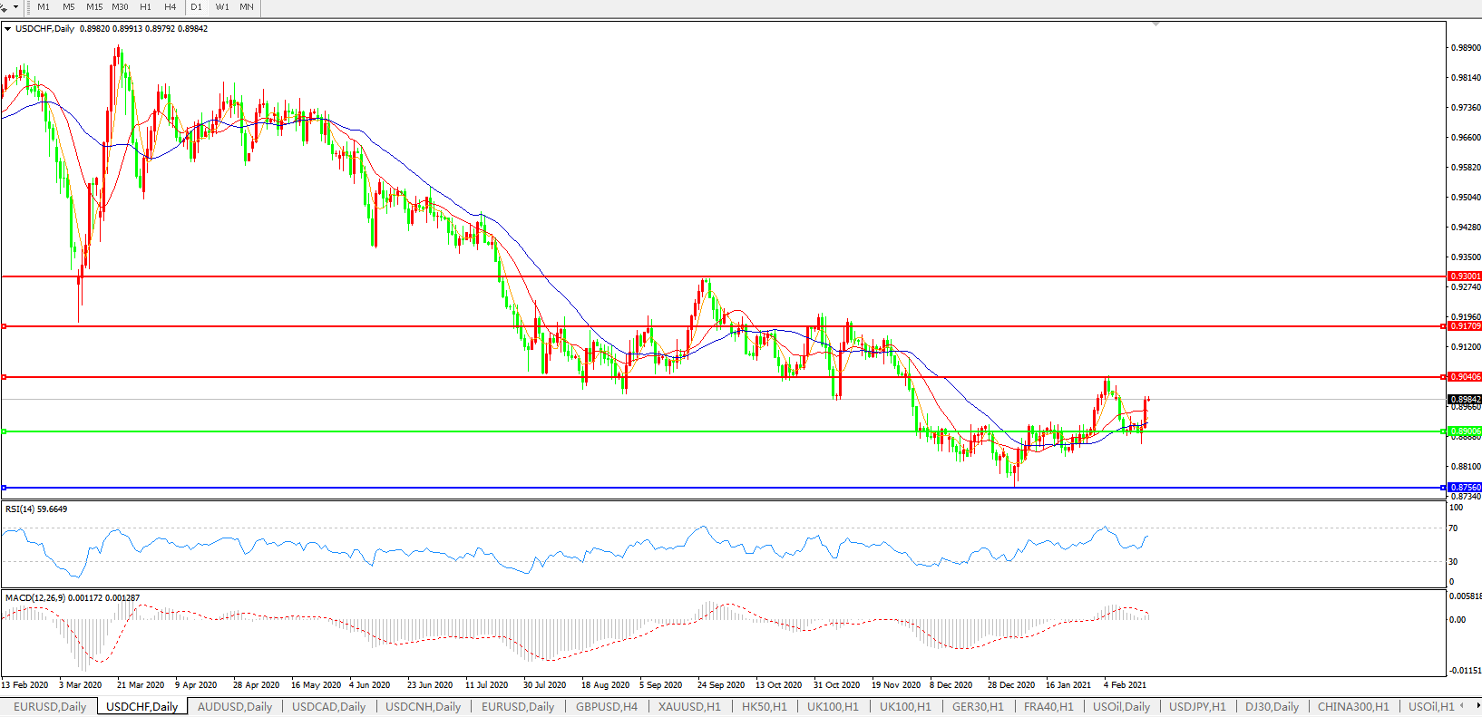 美元兑瑞郎USDCHF    日线图: