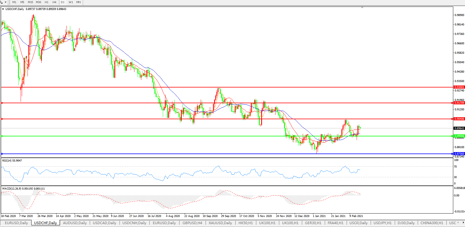交易策略:0.8900上方看涨,目标0.9040、0.9170