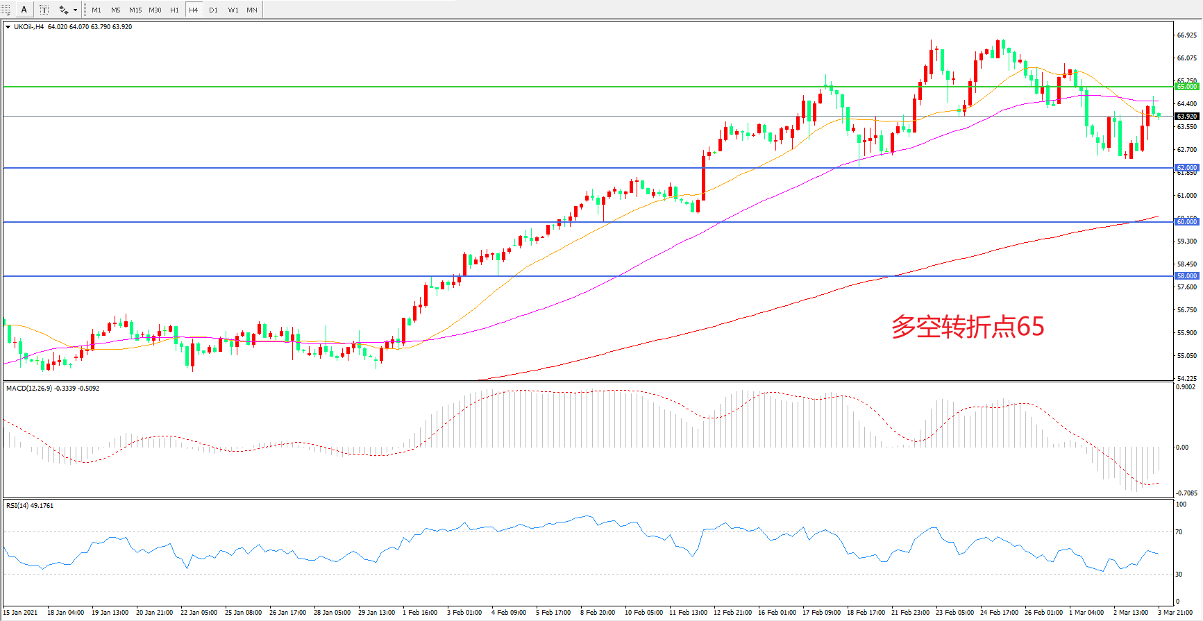 多空转折点:65.00