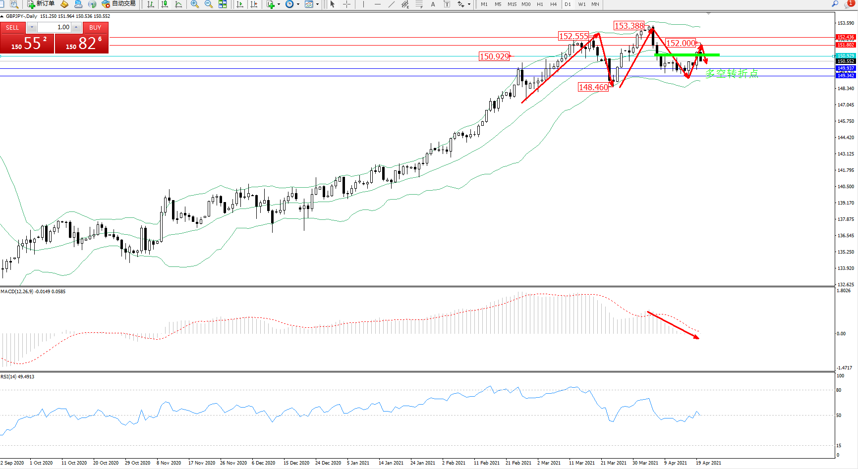 技术点评:多头动力延续布林带指标通道持续震荡上扬,高位触及153.388位置后震荡回撤下行,纠结于中下轨区间弱势整理平移,多头动力有伺上移迹象,触及中轨附近节点后震荡,布林带指标呈张口平移走势良好,关注中下轨区间节点,MACD指标高位空头动力震荡下行至0轴线附近节点开始徘徊,RSI指标纠结于50均衡线附近弱势整理;
